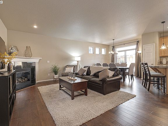Move in ready, immaculate home on a corner lot! Engineered hardwood floors throughout main floor and high ceilings. Great open concept with gas fireplace, kitchen with eating bar, tile counters, gas range, stainless refrigerator & pantry. 3 bedrooms plus vaulted loft w/ skylight. Double doors to vaulted master, double sinks, w/in closet. Another amazing feature of this home is the large backyard patio. It's big enough to entertain and more private than most. Come check it out today!