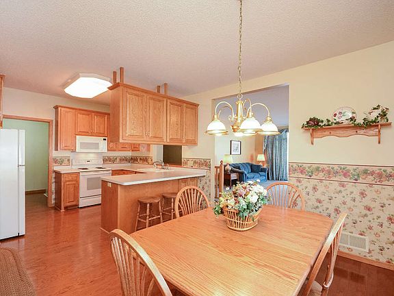 Wonderful Wensmann built, rambler-style end unit walkout townhome with 3 bedrooms, 3 baths and gas fireplace! Lovely light filled living room has sliding doors to deck. Sparkling, convenient kitchen with Mannington Hardwood floors, handy pantry & abundant cabinetry is adjacent to laundry room. Formal/informal dining +breakfast bar! Large master bedroom with walk-in closet & 3/4 bath with double sink vanity. 2nd bedroom & full bath complete main level. Walkout level features wonderful family room with corner gas fireplace & an abundance of built ins + walkout to patio. Spacious 3rd bedroom with window seat, + full bath & utility room grace walkout level., Very convenient location with numerous updates done to home: Roof, driveway, air exchanger, furnace, air conditioner, water softener & filter, water heater, refrigerator/freezer, dishwasher and garbage disposal. Private with green open space yet very convenient location--within walking distance to a few! See today! Walkout rambler townhomes are special--for today and for the future!