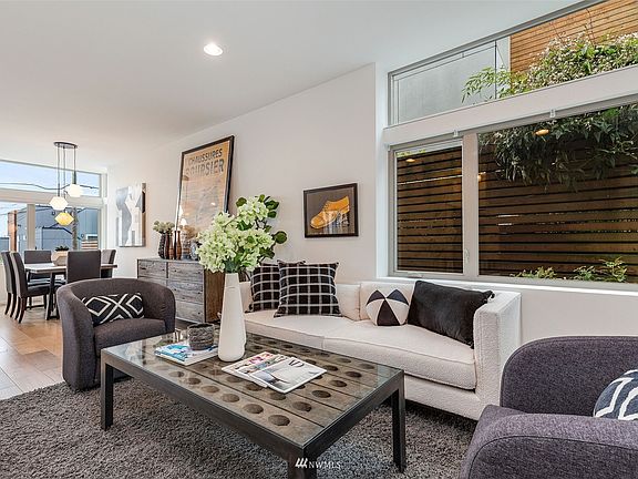 Located in the heart of coveted North Beacon Hill, this exceptional property is NOT your cookie-cutter skinny townhome! For starters, there are no stairs to get to the living space; step through the front door to high ceilings, tons of natural light, views from almost every room, outdoor spaces on every floor, and quality finishes–built by Dwell NW. An open layout; the chef’s kitchen w/ island flows to a true dining area & living room. Primary suite: two walk-in closets, dual sinks, soaking tub + huge shower. Add’l 2 bedrooms + full bath and an office nook. Stunning Rainier, water & city views from the rooftop deck. Large garage plus driveway parking. No rental restrictions. Beacon Hill Int’l Elem. WALK to light rail, parks, eats & drinks!