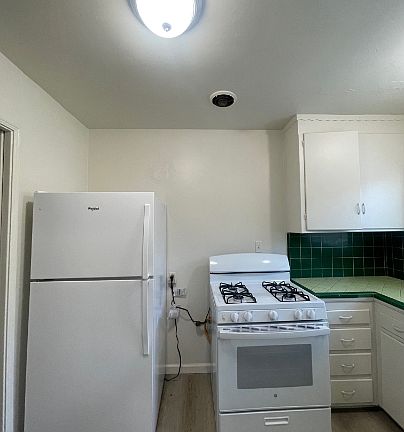 Spacious lower unit in locked entry 4plex -Freshly painted with new flooring and window coverings. -Large living room/dining area with built in cabinets -Kitchen with 2 doorways and ample counter and cabinets, gas stove and refrigerator -Long hallway to bedroom and bathroom, with back door. -One off street parking space -Laundry in building (app based) -Garbage and landscaping included -Close to shopping in Alameda and Laurel District -Cat considered with deposit -Renter's Insurance required -Close to public transit, Fruitvale Bart and both 580/880 freeways. -Shopping on International and in both nearby Laurel district, and Alameda. Owner pays for garbage- Tenants would be responsible for EBMUD and PG&E