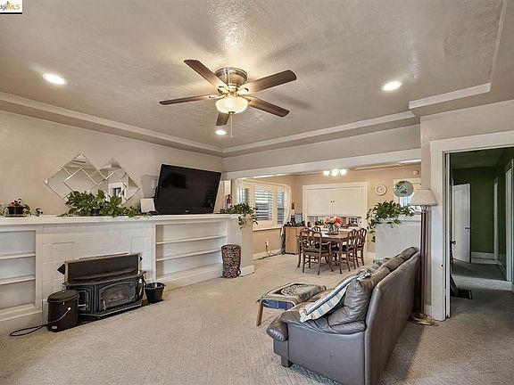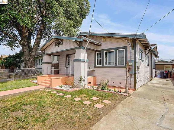 This lovely 3 bedroom, 1 bath family home is not only energy efficient with solar system (owned), wood pellet stove and dual pane windows, but has bonus rooms in basement and has a detached (potential) income unit! An inviting front porch welcomes you to an open livingroom and formal diningroom with ceiling fans and original built-in cabinetry/shelving. The sun-filled, eat-in kitchen opens to the laundry area by the backdoor. Two Spacious bonus rooms (familyroom/office/music room) are just downstairs with interior and exterior entry. Long driveway for parking and a fenced backyard that includes a small garden, tool shed and space for more! The detached in-law unit is an un-permitted converted garage, which includes a bedroom, kitchenette and full bath. Square footage listed does not include bonus rooms or detached in-law unit. Sewer Lateral Compliant!