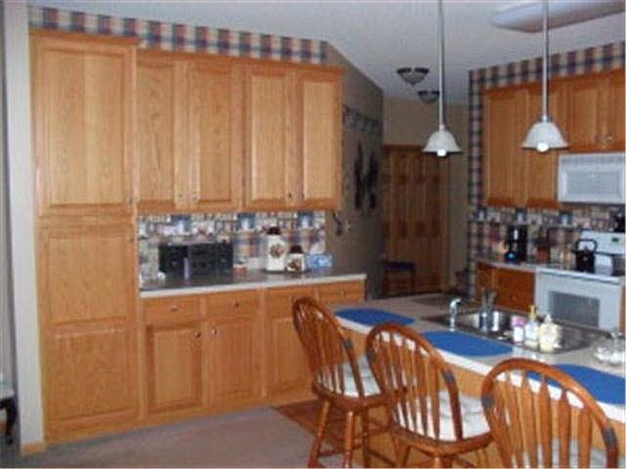 - Description: Wood, island, eating area