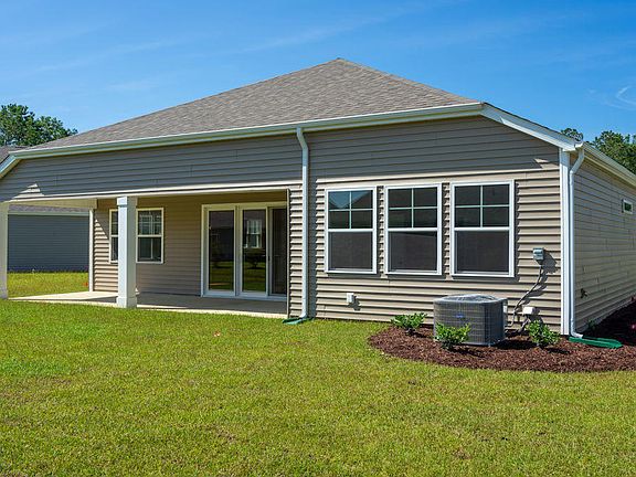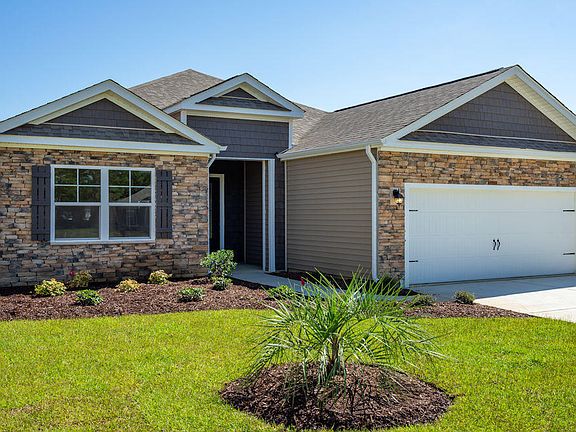 Popular Eaton plan with a 4' Extended garage on a cul de sac homesite. A very open floor plan with a well designed kitchen and large walk in pantry. If you like to entertain family and friends, this kitchen has lots of granite counter space and cabinets and also a large counter height granite island that seats 4. An 8' sliding glass 3 panel slider off the great room opens to a 26x9 covered rear porch. The master bedroom has a tray ceiling and large walk in closet. Master Bath has a 5' walk in shower and 2 linen closets. BR 2 and 3 are in the front of the house with a guest bath, Separate laundry room with a mud room off the garage is convenient and opens into the kitchen. Hardwood floors in the living area with ceramic baths and laundry. Wonderful home for easy Carolina living.
