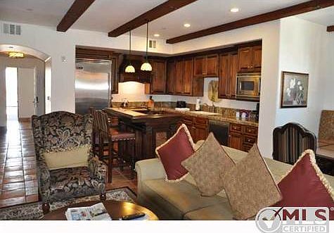 Live the resort life on the grounds of Omni La Costa Resort and Spa. This villa is sold fully furnished and appointed with top-of-the-line appliances and custom furniture. Both bedrooms are Masters with balconies and large bathrooms. The great room is generous in size and features a full bath and sleeper sofa to accomodate additional guests. Owner lock-out closets to keep your personal belongings. Rental opportunities are available when you are not in residence. Sport Membership to La Costa included. Brokered And Advertised By: La Costa Resort Real Estate Listing Agent: Kelly Zapp Ginsberg