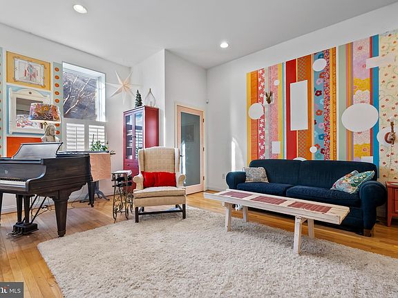 A perfect blend of Victorian elegance and modern convenience, spanning over 3,000 square feet, this meticulously renovated townhome offers 3 bedrooms, 2 full & 2 half baths, and a dedicated parking pad. This beautiful residence welcomes you with gleaming oak floors, hand-wrought ornamental ironwork, artistic murals, four fireplaces, and thoughtful design details. Designed for both everyday living and entertaining, the main level maintains a traditional layout while offering an open sightline for seamless connectivity and a flood of natural light. The chef’s kitchen features professional-grade stainless steel Jenn-Air stove, wood cabinetry with dovetail drawers, granite countertops, and stainless steel appliances. Outdoor spaces are just as impressive. The ground floor includes a concrete patio with wrought iron fencing plus a custom gate that secures the courtyard. A wrought-iron Romeo and Juliet balcony adjoins a charming bedroom, while the third-floor primary suite boasts its own private multi-level deck with panoramic views of the city skyline and Johns Hopkins Medical Campus. Storage is plentiful, with multiple walk-in closets and a lower-level basement for additional space. Dual-zone heating and cooling ensure year-round comfort. Become part of the vibrant & historic Butchers Hill community. Live two blocks from Johns Hopkins Hospital and minutes from Fells Point, Canton, Harbor East, and all the amenities of downtown while being cradled by the best backyard in Baltimore, Patterson Park, spanning 137 acres and a hub for recreation, history, and community gatherings.