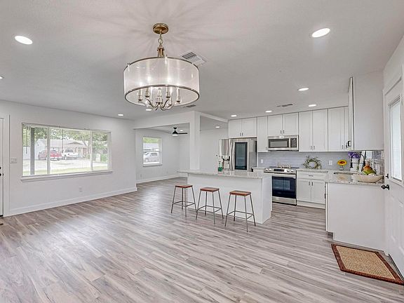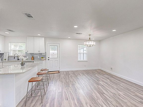 Open concept kitchen features granite countertops, new cabinetry with soft close drawers, and stainless steel appliances - dishwasher, microwave, electric range, and refrigerator. Stackable washer and dryer hookups inside the home. You will also find a long driveway leading up to a detached 4 car garage on side of the home for ample parking. Large backyard perfect for entertaining friends and family! Minutes away from Casa View shopping, White Rock Lake, and the Arboretum as well as 635 for easy commutes.