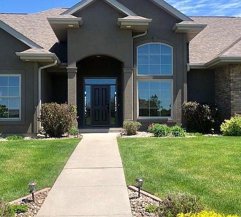 Executive Vander Linden Custom Home at Prairie Pointe. Feel at home as you step inside. The 14' high ceilings and floor to ceiling gas stone fireplace highlights the great room. Off the great room a gourmet kitchen with custom vent hood, slate backsplash, gas stove, double ovens, stainless steel appliances, granite countertops, under counter lighting and raised island that seats four. Dining room comfortably seats eight sliding glass door opens to a stone paver patio with built in gas grill to add to entertaining space. Private master with 10' ceilings, walk-in closet, master bath with double sinks and step-in shower. Two additional bedrooms, full bath and half bath completes the main floor living. The lower level features, family room two additional bedrooms, full bath, private office, exercise room and laundry room. Spotless oversized 3-stall garage with staircase to lower level. A peaceful location overlooking the countryside while still being part of a neighborhood.