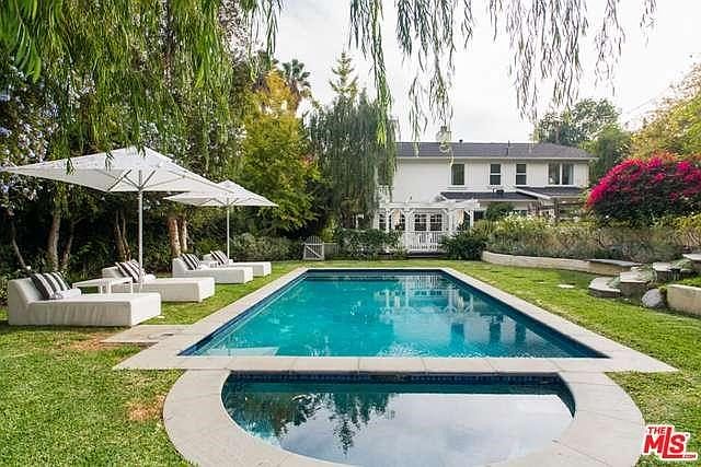 Situated on over a half acre of private grounds with multiple gathering areas, a pool with period outdoor fireplace and an abundance of fruit trees, this home is an oasis of peace and tranquility. Extraordinary opportunity to live in the exclusive gated community of La Brea Terrace with no home owners dues. Close to everything but hidden away from the city, rarely do these properties come on the market. This home includes an open plan kitchen/family room, breakfast nook, formal dining room, formal living room, additional den, office and a guest house with kitchen, bedroom and bath. Two car garage plus plenty of guest parking. An additional structure currently being used as an artist space rounds out this unique property.