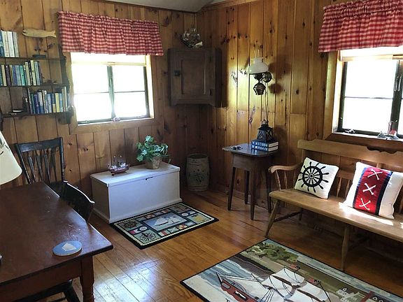 Charming Lake Champlain Cottage. Enjoy all the fun being on the lake entails, beautiful sunsets, swimming, boating, fishing and relaxing! Facing West with spectacular sunsets and views, the sloping lawn empties into a lakefront deck. The seasonal home has an open kitchen, dining and den area which steps down into a large living room with lovely stone hearth and gas jotul stove for the coldest of evenings. The bedroom on the second floor is enormous and has its own deck facing the lake or balcony overseeing the living area. Roast marshmallows or make s'mores in the outdoor fireplace. It's all here just for your enjoyment. Property being sold fully furnished.