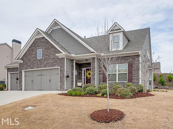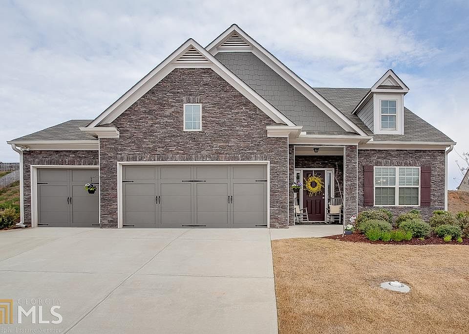 Beautiful 3 car garage home with grey stacked stone exterior features 4BR/2.5BA with Master-on-Main, seperate formal dining room. Open kitchen with island, pantry, granite countertops, open view to breakfast area & two story family room. Large master has walk in closet, garden tub, separate shower, double vanity & private water closet. Laundry room is on main level. Upstairs includes three generous bedrooms & full bath. Excellent outdoor living includes large back covered patio with section of pergola & a flat lot.