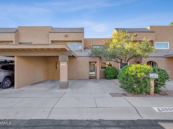 Updated & Value-Priced townhome, w/ private yard in The Buttes! Prime location just minutes to Old Town Scottsdale, Arcadia, Sky Harbor, or Downtown Phoenix++. Easy access to all the hot spots from your quiet community w/ views of Papago Buttes & Camelback Mountain. Great room; fireplace; breakfast bar; granite counters; new hard surface flooring throughout; skylights; beautifully updated baths! Large downstairs bedroom & bath. Primary bedroom is upstairs w/ versatile 3rd bedroom with access to peaceful balcony; perfect for home office/gym. Watch the sunset on the red rocks! Enjoy current & upcoming equity as the 62 acre AZUL infill technology center is growing just down the street! Very Private + Fully fenced backyard for outdoor living too. All at a competitive price, gated & low HOA!