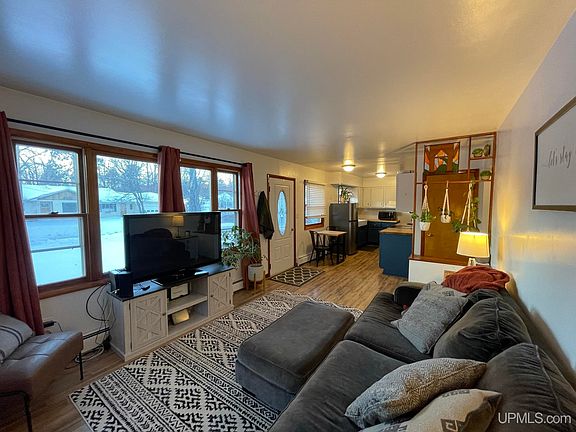 This cute, clean, updated ranch is ready for its next owner. Centrally located by hiking and biking trails, NMU, Presque Isle and the beautiful beach shores of Lake Superior. Inside is a completely updated kitchen with butcher block counters, open shelving and a farm style porcelain sink. A beautiful full bath is just down the hall with new modern vanity, fixtures and a fantastic led light/bath fan. Updated flooring throughout, refinished hardwood and fresh paint. Outside - new electric garage door, more fresh paint, new exterior doors, lots of new landscaping, large square stone and concrete patio, custom mural... Wow, what a perfect space to entertain outdoors. The roof is less than 10 years old. Home includes all new appliances, including the washer and dryer. If you have furry family, the breezeway door to garage provides a pet door access to back yard. They will love their new home too! All offers are being presented on 2/8/2023 at 12 noon EST with a reply by time of 9pm EST the same day. Please feel free to watch the video tour as well.