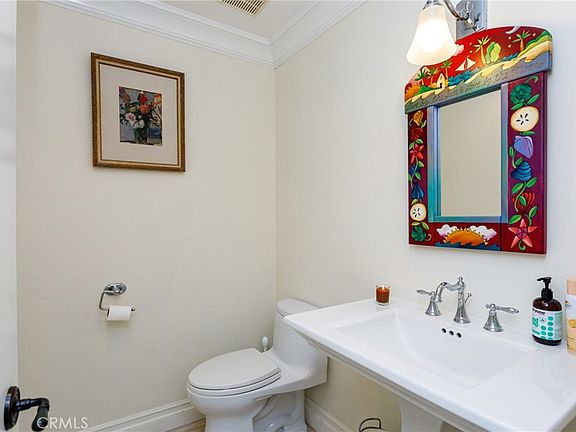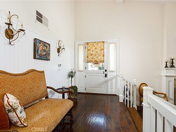 This home features solid walnut hand distressed wood flooring throughout, a living room with vaulted ceiling, a dining room, and a gourmet kitchen with stainless steel Viking 6-burner range, Bosch dishwasher, built-in Kitchen Aid refrigerator, granite countertops and a breakfast bar opening to the family room which features a stone fireplace and doors opening to the lovely backyard. A downstairs bedroom and 3/4 bath complete the first floor. Upstairs is a beautiful master suite with plantation shutters, built-ins & walk-in closet. The secondary bedrooms all feature plantation shutters, closet organizers and mirrored wardrobe doors. Other features include crown molding, a water softener, alarm system, and custom storage and epoxy flooring in the garage. Harbor View Homes has wonderful amenities including community pools, a swim team, BBQ areas, tot lots, sports fields, sport courts, Basketball courts, beautiful greenbelts and the award-winning Anderson Elementary School. This neighborhood is ideally located close to upscale shopping & dining, theaters, beaches, the Performing Arts Center, freeways, and John Wayne airport.