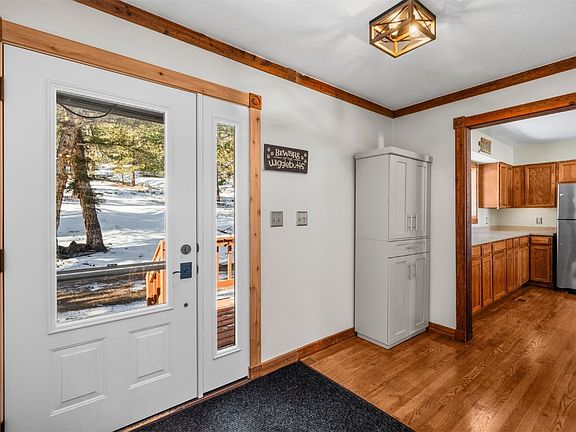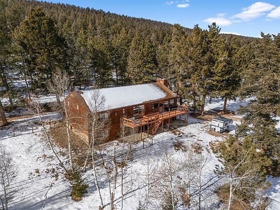 Nestled in the serene beauty of Redhill Forest, this mountain home offers privacy, breathtaking mountain views, and an abundance of outdoor activities. Situated on 2.5 acres and nestled among towering pine and aspen trees, this 2800+ sq ft home is perfect for those seeking a mountain getaway while being just minutes away from local amenities. Key features include 4 spacious bedrooms, 2 bathrooms and an expansive great room. The finished basement is ideal for additional living space or entertainment. The large kitchen with stainless steel appliances and sleek hardwood floors allows plenty of room for chefs to prepare meals. The cozy rock fireplace on the main level and a pellet stove in the lower level warm the home for the cool mountain evenings. A large deck offering spectacular views is perfect for alfresco dining as well as enjoying the sunshine. The attached oversized two-car garage provides ample space for vehicles, ATVs, and all your outdoor gear. Redhill Forest community benefits include access to year-round outdoor activities, private fishing rights on the Middlefork of the South Platte River and BLM land access for hiking and hunting. This desirable mountain property is located less than 15 minutes to Fairplay and 45 minutes to Breckenridge. It is also close to reservoirs, rafting in Buena Vista, and only 2 hours to Denver. Whether you're seeking a peaceful retreat or a short-term vacation rental opportunity, this home offers the best of mountain living in one of Colorado's most desirable communities.