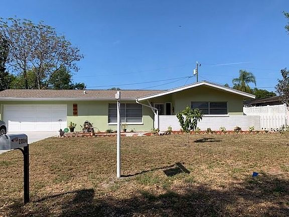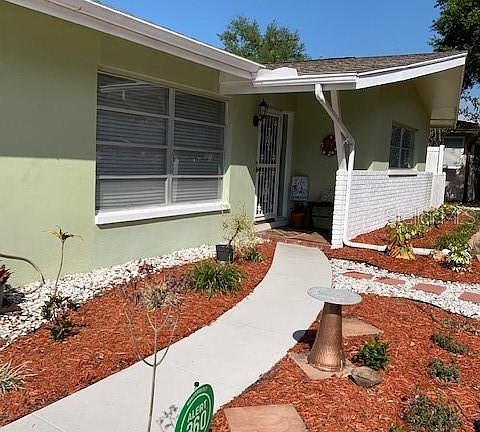 Make yourself at home in this cozy 2 bedroom 2 bath Clearwater home. This home boasts an open floor plan with beautiful marble flooring throughout. Features include a large living room, dining room, spacious bedrooms and a nook that could be used as a playroom or as office/Den. Kitchen has granite countertops with beautiful cherry wood cabinets, updated appliances with breakfast bar and large eat-in nook overlooking the fenced backyard which was professionally landscaped with new sod. The large backyard is very private with extra storage available with the additional shed to store your lawn equipment. Enjoy the screened in back porch or sit under the pergola in this peaceful backyard. Garage is nice and clean with a built in work bench with drawers. Roof, electrical panel and A/C have all been updated. Priced to sell!!!