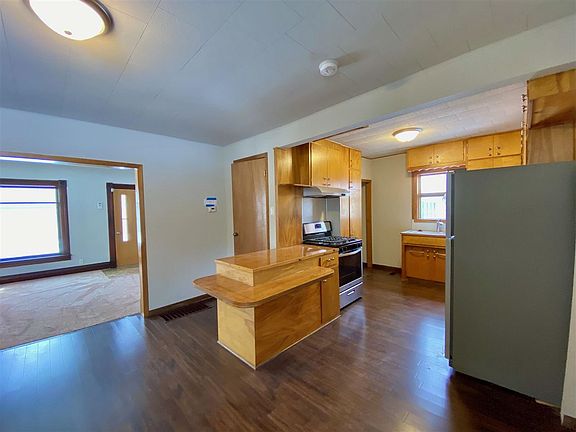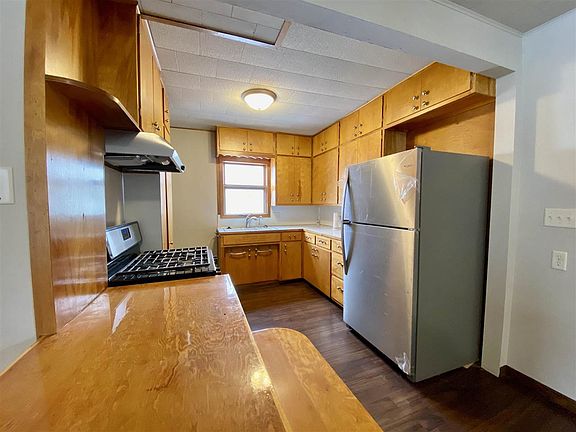 Must see inside! 3-4 bedroom, 2 bath, and large 26 x 26 garage. Main floor bath, PLUS main floor laundry. Layout allows for main floor bedroom; or big living room and front sitting room = OPTIONS. Nice kitchen open to dining and breakfast bar; and new stainless kitchen appliances. Upper level bath with walk-in closet and potential of 3 bedrooms. Fresh paint, finishes, floor coverings & new garage roof. LARGE 0.43 acre lot, enclosed porch, and nice patio.