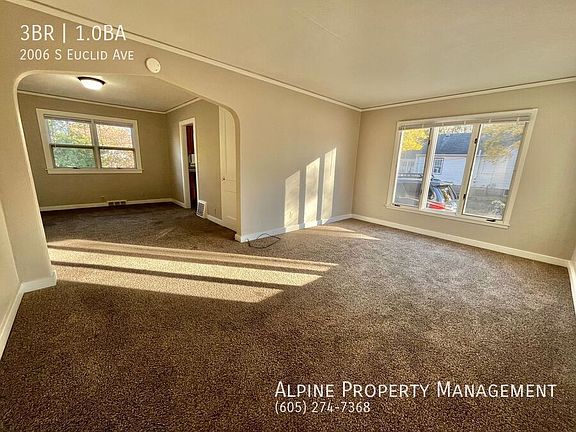 Schedule a tour today of this 3 Bed/1 Bath single family home for rent in central Sioux Falls at 2006 S. Euclid Ave!! The home is conveniently located in the heart of Sioux Falls and has a large two stall garage. The main floor features the living room, formal dining, two bedrooms with double closets, bathroom with tub shower, and kitchen which is equipped with refrigerator stove and dishwasher. Upstairs is a third large bedroom and landing area. The basement is unfinished with washer/dryer hookups and tons of storage room! There is also a nice covered front deck, as well. - $50 application fee per adult - $1395 security deposit - Tenants are responsible for all utilities and lawn/snow care - Pet friendly(2 max) and non-smoking - Alpine Benefits included for $25/month extra (see website for full details) - Section 8 accepted if your voucher meets the marketed rent amount Professionally leased and managed by Alpine Property Management Central Air Detached Two Stall Garage Double Closets Front Porch Large Backyard Non Smoking None Online Tenant Portal Pet Friendly Stove Tub Shower