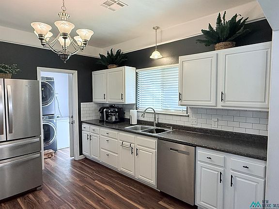 Step into this beautifully remodeled 3-bedroom, 2-bath home, blending modern upgrades with timeless charm. Beautiful home established in one of Deming most desirable areas. The spacious open-concept living area features updated laminated wood flooring through out the main areas, white kitchen cabinets, subway white backsplash tile and stainless steel appliances complement this home creating a warm inviting atmosphere. The master suite includes an updated en-suite bathroom with a walk-in shower, double sinks, stylish tile work, and contemporary fixtures, plus walk-in closet. Private backyard with beautiful tall pine tress, grass and a covered porch to enjoy the evening gatherings, 30-foot RV Carport, and many other amenities to list. Call and schedule your appointment today!