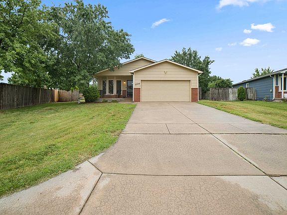 Welcome home to this beautifully maintained property offering nearly 2,000 sq ft of living space in the Pawnee Mesa Addition within the Goddard School District. Featuring 3 spacious bedrooms and 2 full bathrooms, this home is move-in ready with a neutral color palette throughout with fresh interior paint on the main floor. Step inside to find large rooms and generous closet space, including double closets in both the master and basement bedrooms. The updated kitchen boasts new appliances and fresh flooring, while the bathrooms include a new vanity and toilet. Enjoy peace of mind with major updates already completed: new roof, AC, water heater, and several new windows. Additional improvements include some new ceiling fans. The full finished daylight basement offers a large family room, along with a sizable storage/laundry room featuring washer/dryer hookups and ample storage space. Outside, you’ll love the fenced backyard and concrete patio, perfect for relaxing or entertaining. The attached 2-car garage provides convenient parking and extra storage. Don’t miss out on this move-in ready gem—schedule your showing today!