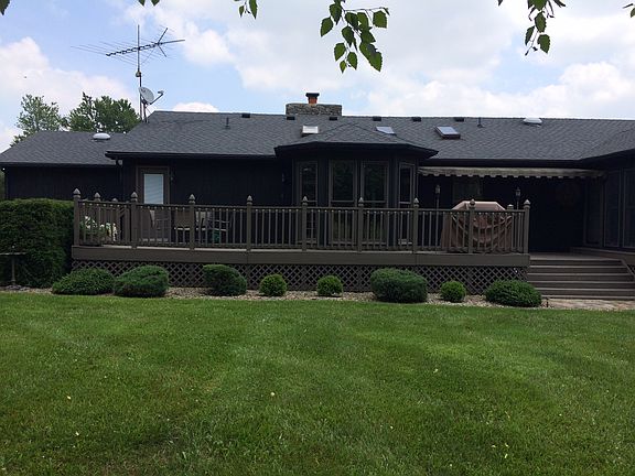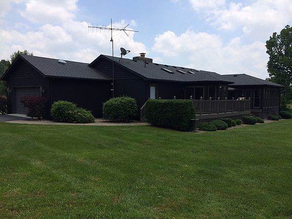 Beautiful stone & cedar ranch style home. House sits on a scenic lot w/lake view on 2.07 ac. Covered porch. Foyer shows a stunning stone gas fireplace w/ beautiful floors & vaulted ceilings. Two skylights for lots of natural light flow into the open floor plan LR, kitchen, sun room. 3 BR/2.5 BA. Anderson Windows. New wood floors, added 12x19 Sunroom off Mstr BR. Mstr BA has glass enclosed marble walk in shower, jetted tub w/heater, new vanity. Walk in Closet. Move in ready. All kitchen appliances stay and includes blk double door refrigerator, smooth top stove w/double oven, DW, trash compactor. Clothes W/D stays. Owner recently installed a tank less hot water heater, new heat pump furnace & C/A. Has a secondary gas furnace. Roof is approx 5 years old. Beautiful Amish built 16' x 16' gazebo, 30x40 heated pole barn w/opener & lean to on the side for extra coverage. Beautiful landscaped yard, mature trees. Stone entrance, paved drive. Custom built lg dog kennel/run that's shady.
