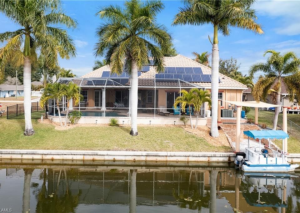 Beautiful classic Mediterranean Single Family Home, on fresh water canal with southern exposure. Luxurious palm trees and peaceful setting. Formal Living and dining area with a large wet bar With lots of storage and beverage fridge that is perfect for entertaining. A very quaint office area. Stainless steel appliances and crafted wood cabinets in a beautifully done kitchen with an island to meet all your cooking needs that opens to the family room. Step out to the pool deck and the tropical oasis that awaits! Hop on your boat and take a ride through the canals and to the many lakes available. 2 wonderful size guest bedrooms, with a guest bathroom that has plenty of storage area and a walk-in shower. An exquisite master bedroom, with French doors that will lead you right out to the pool. A dreamy master bathroom with dual sinks, vanity and a walk around shower with seating. Property Has auto sprinklers, and solar heating system w/pool. Some other features are Brazilian hardwood floors and wood accents, crown moldings, tile floors, coffered ceiling in formal living room period pocket sliders and mature landscaping. Quality of ownership stands out as this is a builder owner home.