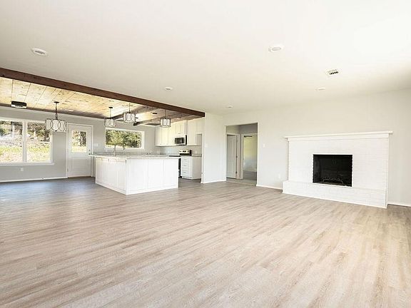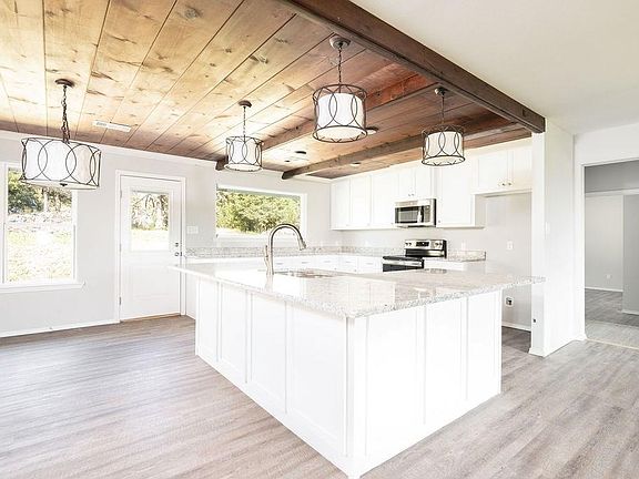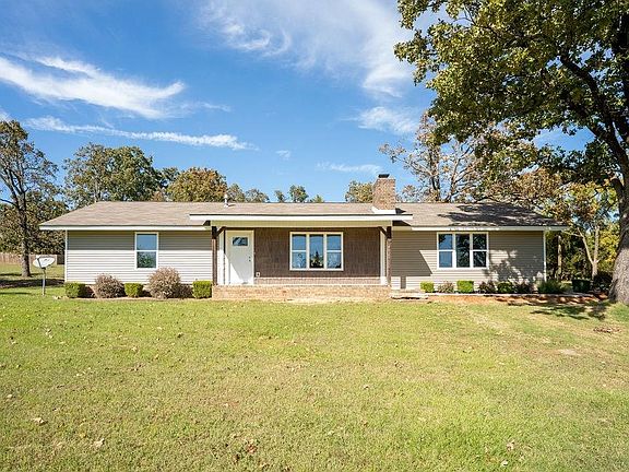 Completely updated in 2020 with new plumbing and electrical. Two car garage converted to extra living space and bedroom. 1.5 acre lot offers privacy. Convenient to highway 71 south. Open living, kitchen and dining. Kitchen has updated white cabinets with granite and stainless appliances. Primary suite has tiled walk in shower and walk-in closet. Owner financing available.