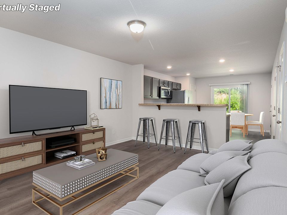 This 1050 square foot townhouse offers modern living just moments away from the heart of Youngsville. The main level boasts luxury vinyl plank flooring throughout, creating a low-maintenance space. The open floor plan seamlessly connects the kitchen and family room, perfect for entertaining. The eat-in kitchen features stainless steel Whirlpool appliances and a raised counter with bar stool seating, ideal for casual dining or gathering with friends. Upstairs, both bedrooms offer the ultimate in privacy and comfort with their own ensuite full bathrooms and walk-in closets. Enjoy the convenience of designated parking spaces, plus ample guest parking for your visitors.