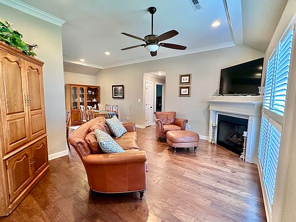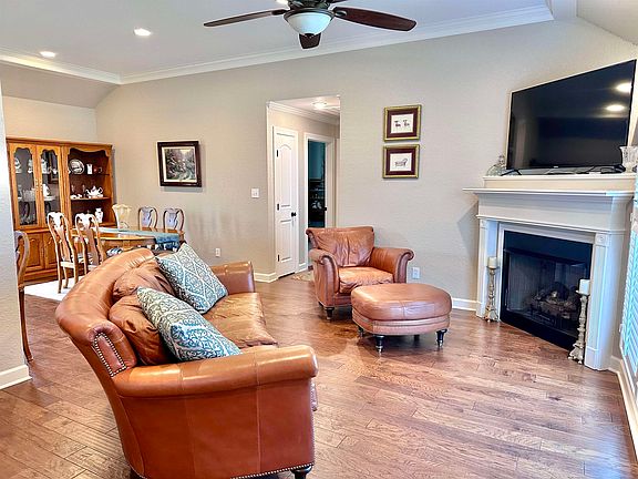 Wow when you walk through the door this immaculate like new home. One owner one level home built 2019 with 1628 square feet. Home has so many extras must see inside with the custom inside wood shutters and special ceilings. Pretty hardwood flooring. Beautiful kitchen with granite and lots of cabinets and countertop space open to the dining and den. Large dining area with seating at the bar. Den has a cozy gas log fireplace. Three bedrooms two baths split floor plan. Large master suite with two closets. Nice master bath has a soaking tub and a tile shower with double sinks. Nice covered patio out back. Two car garage. Call today before it gets gone.
