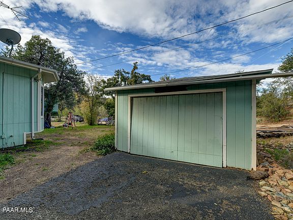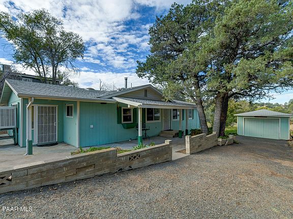 Are you looking for a central Prescott home that is affordable and you can add your own personality and flair? This home has been in the same family for years... It has a 3-car detached garage and additional single car detached garage. Sitting back & below the road with a measure of privacy, this is a traditional ranch floor plan with 3 bedrooms, den/study, and an additional storage room. Wood stove in living room. Vacant, easy to show. Air compressor in 3-car garage conveys. Survey was completed last month and corners were identified. *BONUS: New HVAC installed Nov 2022, new shingles on home & garages to be installed soon!!* Seller requests Empire Title.