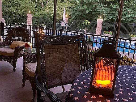 Three story, partially finished basement, garage, carport, sunroom, heated saltwater pool, granite countertops, hardwood floors, tiled kitchen and bathrooms. Awning covered patio with three fans!