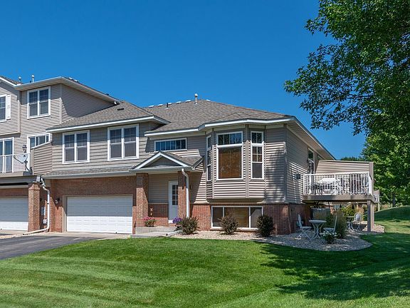 Hard to find 3 BD/3 BA end unit townhome in desirable Heritage Walk development! This open and bright three-level townhome features an open concept floor plan with 10 ft ceilings and lots of recent updates throughout including new hardwood floors, bathroom flooring and carpet, new washer and dryer, new water heater, and so much more! The oversized eat-in kitchen features lots of cabinets and storage space, two pantries, a large breakfast bar, and a sliding door that opens to the entertainment-sized deck with wonderful views and great space for grilling! The upper level is complete with 2 BAs & 2 spacious BDs including a large master with walk-in closet and private bath. The finished lower level features a third bedroom, 3/4 bath, and a spacious family room. Enjoy the wonderful corner lot with tons of green space that feels like your own yard! Prime location just blocks to downtown Lakeville, parks, Heritage Center, library, shops, and restaurants. Well cared for and move-in ready.