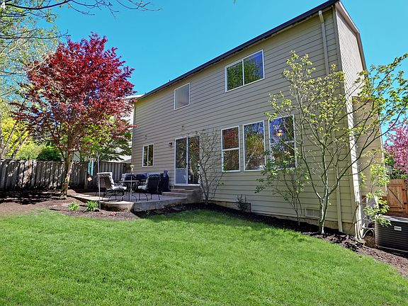 You'll love this move-in ready home with a desirable floorplan, located in Tualatin's Venetia neighborhood near Meridian Park Hospital. The flexibility of five bedrooms offers ample space for all of your needs. As you step inside, you'll be greeted by soaring high ceilings and an open layout. The heart of the home, the kitchen, has been recently updated with beautiful soft modern finishes, stainless steel appliances, abundant cabinetry, quartz countertops, and a convenient island for meal prep. The kitchen seamlessly flows into the nook and cozy family room, complete with a gas fireplace, recessed surround sound speakers, and large windows that overlook the backyard, creating an inviting space for relaxation and gatherings. The expansive primary suite is a true retreat, featuring vaulted ceilings and an en suite bathroom with updated lighting, separated dual vanities, a luxurious soaking tub, and a separate shower. Not to be overlooked, the master suite also boasts a huge walk-in closet with plenty of room for two. The remaining four bedrooms are generously sized. The hall bathroom offers dual vanities, tile countertops and a separated tub/shower combo. Outside, you'll find a fenced yard with beautiful landscaping and a stamped concrete patio, providing the perfect setting for outdoor entertaining or just hanging out. The neighborhood offers easy access to amenities such as parks, schools, abundant shopping and restaurants. Nature enthusiasts will appreciate the nearby trails. Don't miss this chance to check all of your boxes!