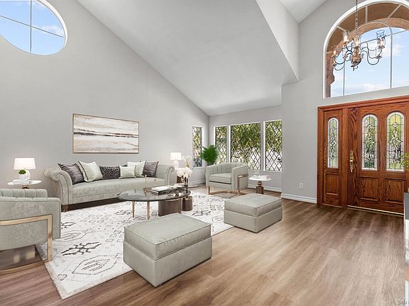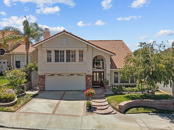 Prime Corner Lot in a Cul-de-Sac! No HOA or Mello Roos. This well-maintained home, featuring one of the larger floorplans in the neighborhood, is situated on a generous 6,539 sq ft corner lot and offers 3035 sq ft of living space with 4 bedrooms and 3 baths. As you enter, you're greeted by soaring vaulted ceilings that create a grand first impression. The main floor includes luxury vinyl plank flooring throughout, as well as a convenient bedroom and full bath. The home features a lovely tile roof that adds to its classic appeal. The expansive loft area, complete with a brick fireplace, is perfect for gatherings. The family room also offers a brick fireplace and a sliding glass door that opens to a covered patio spanning the length of the home. The peaceful backyard is an entertainer's dream, featuring a built-in BBQ area and ample space for outdoor activities. With pepper trees offering a touch of natural beauty, the backyard provides a serene atmosphere and added privacy. The master suite is a standout feature, offering a spacious layout with high ceilings and abundant natural light. The master bath features a separate shower and tub, and the suite includes a generous walk-in closet. Additional features include a convenient laundry room, an attached 2-car garage, a driveway accommodating two cars, and newer carpet upstairs. Located in a tranquil neighborhood. Schedule a viewing today.