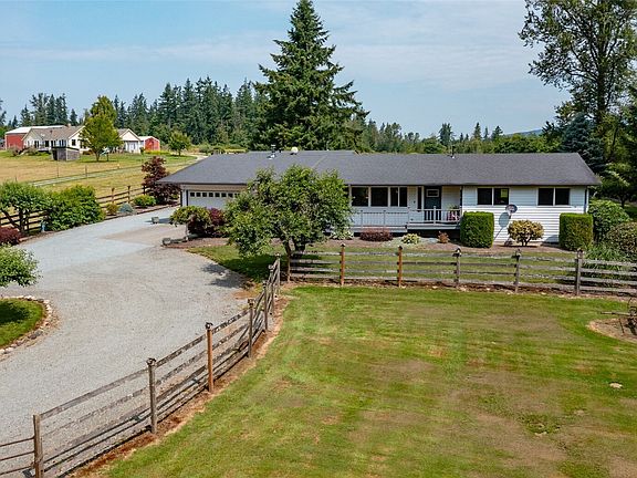 Just in time for the Holidays! 5.5 acres in desired Hidden Meadows. This 3 bedroom plus office, 3 bath home features a bright open living room, large kitchen, storage galore, brand new SS fridge and quartz countertops. Gorgeous Hickory wood floors in main living areas. A cold closet for canning, new hot water tank, quartz countertops in all bathrooms, new tub/shower combo in guest bath and new shower in primary. Home has new triple glazed windows, new exterior fiberglass doors, gutter guards, and more! Heat with propane or wood. Enjoy nature and bird watching while relaxing on your stunning 30 x 40 stamped patio. Spacious 864 sf detached Garage & Shop. Pasture perfect for horses! Conveniently located between MV & Bellingham. See Today!