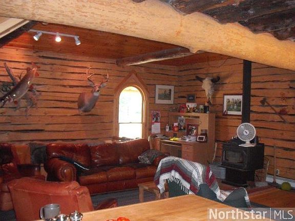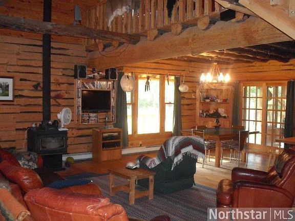 Log home on 11.75 AC near Big Mantrap Lake! Enjoy the wood burning FP & porch that wraps around the home. 2 stall garage and lean to, fenced for horses. Finish the loft and basement to your liking, potential of about 3,000 sq ft finished when completed