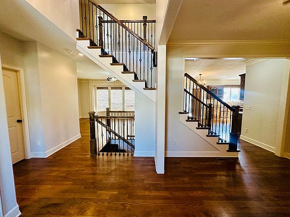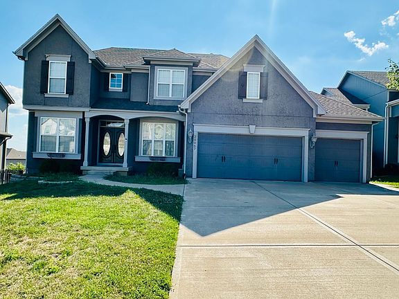 Beautiful Olathe home with ample space available immediately. Main floor features hardwood flooring, great natural light, neutral colors and modern lighting! Formal dining room, open study, living room with electric fireplace! Spacious kitchen with island, gas stove and large pantry. Additional bedroom/ office and half bathroom on main level. Sunroom overlooking fenced yard! Primary bedroom upstairs with large en suite bathroom. Secondary bedroom with private bathroom plus two additional bedrooms with shared bathroom. Bedroom level laundry. Finished basement with recreation room, non conforming bedroom and full bathroom! Fenced back yard with ample enclosed storage under the sunroom. Three Car Garage. Community Swimming Pool.