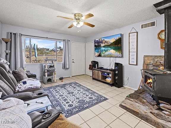 Great all electric site-built home with beautiful views in Cordes Lakes! 3 bedrooms, 2 bathrooms, 1,040 square feet. New water heater & 2 yr old HVAC. Tile flooring throughout with carpet in bedrooms. Family room features a cozy wood burning stove with a lovely stone hearth, perfect for those chilly evenings. Eat-in kitchen with laminate countertops, newer stainless steel appliances, and plenty of cabinets for all your goods. A recently updated vanity and lighting can be found in the rear bathroom. Blink camera system conveys. Covered back patio and fenced yard provide a great entertaining space, with above ground oval pool and spa. The property provides plenty of space to park your RV and off-road toys, with BLM land nearby to use them on. Come see us today!