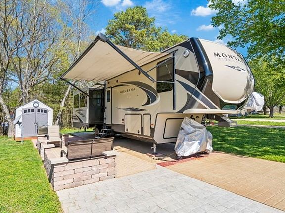 Looking for your own camping spot and never have to worry about reservations? Here is your opportunity! Deeded RV Lot setup with 2018 Montana High Country 38' RV, which has been sightly used since purchased new and pulled onto the lot. Completely furnished, including the storage shed and all the patio furniture. Turnkey ready to start your summer vacations. In the gated community of Cricket Creek RV Park this is a large lot with extended concrete area to offer more outdoor space and parking all on a level Table Rock Lake View lot. Just around the corner is Cricket Creek Marina (full-service marina), offering boat rentals, gas, food, short- and long-term slip rentals and all your fishing supplies. The Army Corp of engineer park offers swimming & picnic area. Cricket Creek RV Estates is a gated community with deeded RV Lots along the edge of Table Rock Lake. The community amenities include swimming pool, laundry, bathrooms, clubhouse, and full hookups which includes water, and sewer.