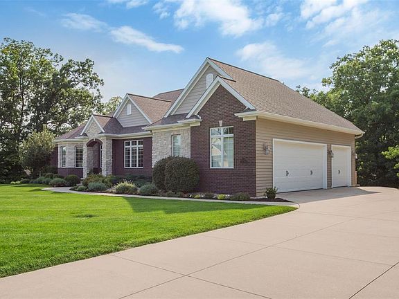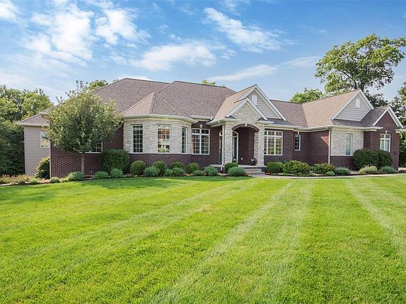 Nestled in the desirable neighborhood of Keystone is this beautiful custom ranch home situated on a 1.71 wooded acre lot. This 4671 sq feet of living space is welcoming with the open floor plan, vaulted ceilings, built in fire place and very spacious great room showcasing a wall of windows to bring in natural light and a private wooded back yard. Enjoy the peacefulness while sitting on your brand-new maintenance free deck. You will fall in love with the amazing kitchen including top of the line appliances, island, beverage bar, a walk-in pantry and adjacent sunroom. The rich Brazilian teak hardwood flooring greets you at the entrance, continuing into the dining room and kitchen along with custom cherry cabinetry with stylistic detail showcasing the attention to detail in this custom build home. The sprawling master suite features a spacious walk in closet, dual vanities, whirlpool tub and a walk-in tiled shower. One of the spacious bedrooms on the main level can easily be transformed into a home office with large bay windows overlooking the front yard. First floor laundry and mud room leading to a very spacious 3 stall garage. The walkout lower level includes a family room, built in gas fireplace, game area, 2 additional bedrooms, a full bath and plenty of storage. The layout of this home was well thought out for family living. Many amenities such as full yard irrigation, surround sound system, security system and central vac. Many new upgrades including recent landscaping, new maintenance free deck, stove top and professionally painted throughout the home.