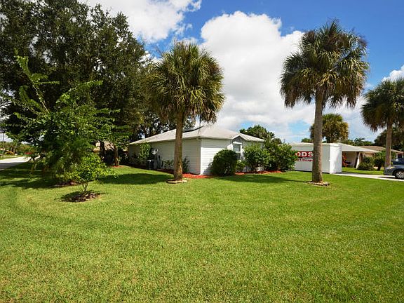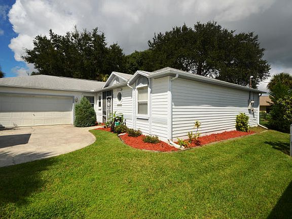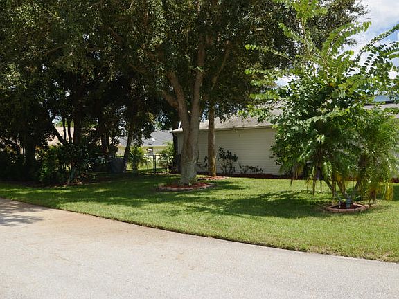 This beautiful 3 bedroom, 2 bath home sits on a large nicely landscaped corner lot. Mature trees provide year round shade & there's plenty of room to play. Relax & enjoy Florida's weather from the screened back porch anytime of the year. Inside you'll appreciate the eat-in kitchen with newer appliances, breakfast bar, pantry & lots of storage. The open split floor plan offers living/dining room combo, vaulted ceilings & ceiling fans. Carpeted throughout main living areas, tiled kitchen & baths. Generous sized master bedroom. Walk-in closet. You'll get city water & sewer, private well sprinkler system & storm shutters. Solar water heater (2 yrs old). Nice curb appeal with side-entry 2 car garage. Vinyl siding is easy to care for. Conveniently located to shopping, schools, restaurants & I95.