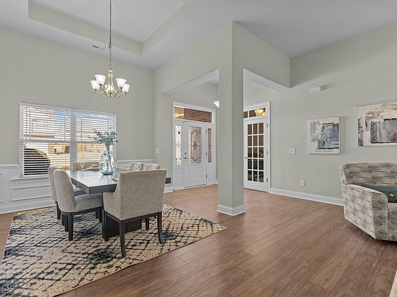 Wide open spaces. Modern updates. Unmatched comfort. This stunning all brick 4-bedroom, 3-bath ranch delivers effortless, all one-level living with soaring 12-foot ceilings and a layout designed for both function and flow. Step inside to brand-new wide plank LVP flooring, fresh paint, and stylish wainscoting that adds charm and character. The kitchen? Completely refreshed—refinished cabinets, sleek quartz countertops, subway tile backsplash, and brand-new stainless steel appliances, including a gas range. The primary suite is a retreat unto itself, featuring a spa-like soaking tub, walk-in shower, dual walk-in closets and a trey ceiling. Need extra space? The dedicated home office makes work-from-home effortless. Outdoors, the upgrades continue—a recently screened-in porch with a built-in dry bar, expanded patio, and a brand-new wooden privacy fence make the backyard an entertainer's dream. Storage is a breeze with custom-built shelving in the garage, an outdoor shed, a dedicated laundry room, and an attic with pull-down access. Tucked away on a large, flat lot with a wooded backdrop, yet just a short trip to schools, amenities and other creature comforts. With 264/87 close by, access to Raleigh is just minutes away. Tranquility, meet convenience. An opportunity this good? It won't wait.
