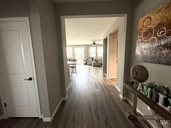 Come see this beautiful home at Highgate Regents at Seven Oaks! This 55+gated community has all the amenities you will need which makes it better than new! This lovely home features 2 bedrooms, 2 full baths, indoor laundry, kitchen with gorgeous Quartz counter tops and stainless-steel appliances. The popular Spanish style elevation has an open floorplan with slider off great room that leads to a beautifully landscaped backyard complete with a large covered patio, block back wall and mature trees. Home has shudders and ceiling fans throughout, luxury vinyl flooring, three-tone paint, upgraded carpet, 2-car garage and owned solar. Enjoy resort style living with private community club house, pool, spa, exercise room; interest groups and lots of activities.