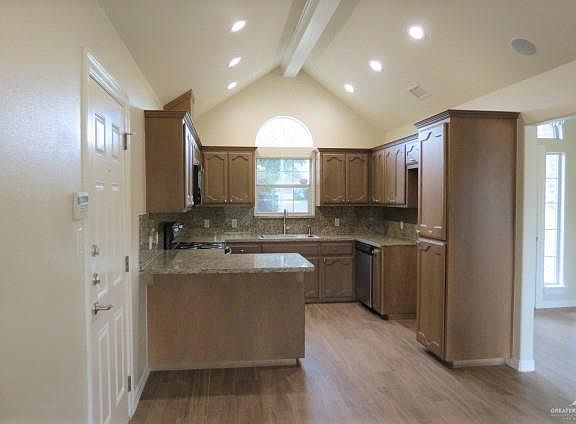 In well established neighborhood, walking distance to John H. Shary Elementary School. Formal Dining room is open to family room. There are 3 Bedrooms, 2 Baths, and large separate laundry room plus a 2 Car front entry garage. The breakfast area outside door leads to the covered patio which takes you to the privately fenced large back yard for family gatherings. House has been remodeled. Interior has been repainted including trim, New hardware on all re-stained cabinets throughout home. All new stainless steel Kitchen appliances. New granite Kitchen counters, both bathrooms have granite vanities Master bath has double vanity, Garden Tub has jacuzzi and separate shower. Decorative high ceilings with ceiling fans. Security System is installed. Tenant pays all utilities and maintains yard. NO SMOKERS - NO PETS. TENANTS PAY ALL UTILITES. Sprinkler system has just been added for lawn care. There is a storage building in the back yard for lawnmower and other lawn equipment.