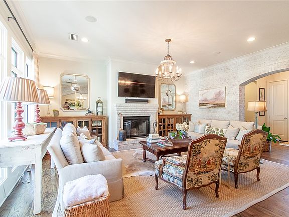 The perfect blend of elegance, warmth, and charm awaits you in this East Lake beauty! Entertain with ease in the den with abundant windows overlooking the courtyard complete with multiple sitting areas, cozy fireplace, and tranquil fountain. Wet bar is conveniently located by the cocktail room with stately pocket doors, wooden beams, and fireplace. The chef of the home will fall in love with the upscale appliances, farmhouse sink, well-appointed island, walk-in pantry, and spacious butler’s pantry. Retreat to the exquisite primary suite with spa-like amenities, two large walk-in closets, and exclusive washer and dryer. Main floor stylish home office with custom cabinetry is located by the drop zone. Upstairs offers a sizable bonus, bedroom with full bath as well as two additional bedrooms sharing a Jack and Jill bathroom. Oversized laundry room with barn door entry conveniently accessible to all bedrooms. Beyond the porte-cochere is a detached spacious room with ample possibilities!