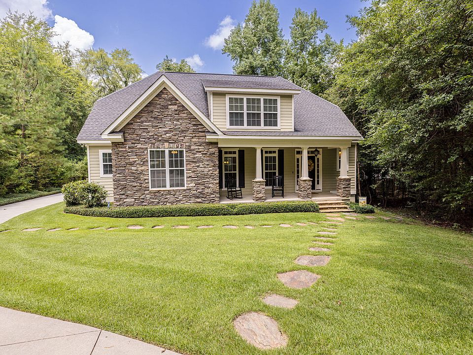 Welcome to this Spacious 6BR 4.5BA Home Custom built by IVEY HOMES on this Large .97 Acre Wooded Lot. with an attached IN-LAW SUITE! Rocking chair front porch. Freshly Painted Neutral Interior JULY 2023! Wood flooring throughout Foyer, Great Room, Dining Room and Kitchen/Breakfast Room. Owner's Suite on the MAIN level. Kitchen features granite countertops breakfast bar and stainless steel appliances and overlooks the Great Room w/ fireplace. Spacious bedrooms upstairs with larger 5th/Bonus. Attached in-law suite complete with wood flooring, kitchen, den, bedroom, full bath and has a large walk-in closet with separate laundry area! Both refrigerators remain. House is wired for generator.