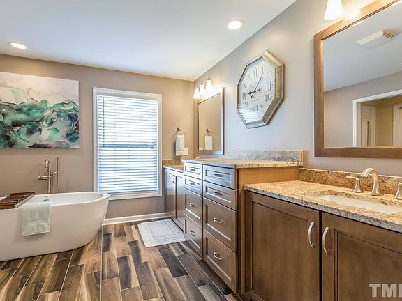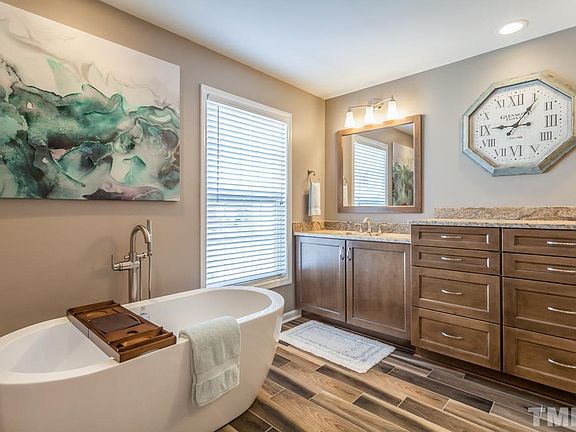 Gorgeous & spacious home w/ modern updates! 5 br, 3.5 baths, finished basement w/ kitchen, br & bonus rms; All formal + office/study, family rm is open to breakfast rm & kitchen, large kitchen w/ island & desk. New luxury spa-like master bath, HUGE master WIC. Large fenced yard, irrigation system. New roof & Leaf Guard rain gutters; new H20 heater. Pool & tennis community, close to all conveniences & I540. Buyer 1yr warranty incl. Priced below market, this will not last so HURRY!