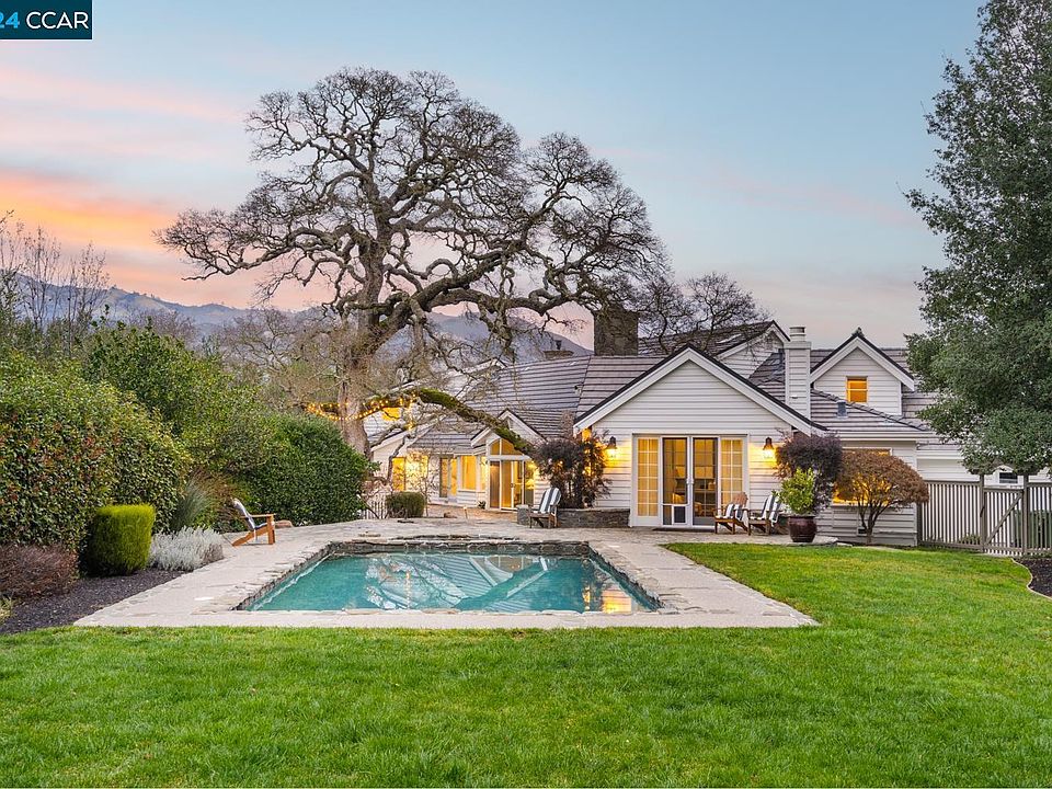 Experience luxury living in Alamo. Set on a sprawling 3.23 acre lot, this farmhouse-style estate is nestled off a long private driveway offering privacy and mature landscaping. Featuring pool/spa, lush lawn, stone patio&deck w/fire pit & batting cage. This home is adorned w/high ceilings, wainscoting&hardwood floors. Chef’s kitchen w/ brick fireplace, pantry, butcher block island w/prep sink, farmhouse sink&rotunda-style dining nook. Equipped w/top-of-the-line SS appliances, including Miele coffee machine&dishwasher, Wolf stove, wine fridge, 2 SubZero fridge&versatile butler’s pantry/mudroom w/sink, cabinetry&outdoor access. The formal dining room opens up to the family room w/easy access to the backyard. The primary suite is located on the 1st floor, walk-in closets w/built-ins, & speakers, 2-way fireplace with direct outdoor pool access. The ensuite bath has heated floors, 2 sinks, tub&walk-in shower. Main floor is complete w/secondary bedroom, hall bath w/pool access, laundry room&office w/built-ins. Offers one staircase leading to a private ensuite bedroom with additional stairs lead to a loft&2 ensuite bedrooms. Enjoy amenities of esteemed country clubs, incl Round Hill CC& Diablo CC& take advantage of the highly acclaimed SRV School District.