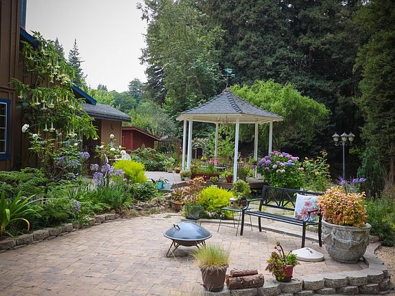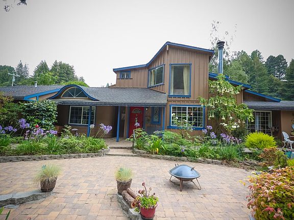 Magical Creekside Property enjoyed by current owners for 45 years! This over 12 acre property traverses both sides of the creek and includes an orchard and usable land as well as majestic redwoods. There are two entrances to the property. One directly to the charming main home 4 BR & 2 Bth of 1948 sqf which is two levels and two car garage. The other entrance leads to an approx 2000 sqf barn/shop (6 rooms and office) with lots of outside parking and usable land and a fenced outside area for ? Lots of rooms for home hobbiest (owner collected cars & tractors), wood working projects and even large business equipment. This is a unique property with a personality of its own and potential to be improved. You must see it to enjoy it's beauty and experience the tranquilty. Owners even had weddings for family and friends on site. Outside 1/2 bath located near entertaining area. Orchard has a variety of fruit trees. There's so much more to this property than I can describe here.