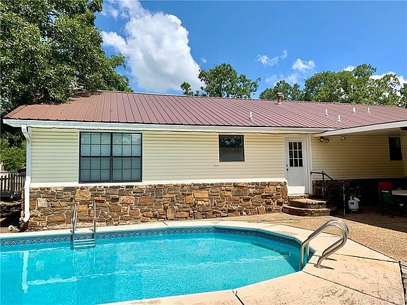 Situated just inside Hackett city limits with everything on your list! Some remodeling has been completed but this home needs a family to make it their own! 54x36 workshop with RV parking/storage, room for horses or have your own hobby farm! Stone & vinyl exterior, concrete countertops, newly stained wood flooring, fresh paint throughout plus remodeled bathrooms! Newer HVAC, newer roof & new water heater, metal roof, gutters & a sunroom. Be in before school starts to enjoy the in ground diving pool!
