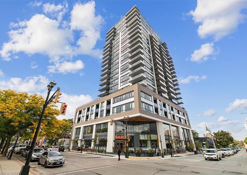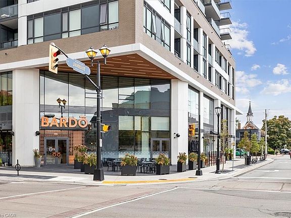 Welcome to The Gallery, the epitome of luxury condo living in the heart of downtown Burlington. This stunning 1-bed + den, 1-bath suite provides 649 sq ft of bright, thoughtfully designed space with floor-to-ceiling windows showcasing breathtaking, panoramic views of Lake Ontario. The sleek, modern kitchen features a gas stove, large island, quartz countertops, stainless steel appliances & a striking new backsplash, while wide-plank flooring, fresh paint, stylish new lighting & custom blinds elevate the space. The versatile den is ideal for a home office or creative studio. Step onto the oversized 160 sq ft covered balcony with a built-in gas line for BBQs & soak in spectacular south-facing lake views year-round. Residents enjoy unmatched resort-style amenities: indoor pool, state-of-the-art fitness & yoga studios, party & games rooms, rooftop terrace with BBQs & firepit, 24-hr concierge & luxurious guest suites—all with acclaimed Bardo Restaurant conveniently located on the main floor. Walk to Spencer Smith Park, the waterfront, shops, restaurants & cafés, with quick access to QEW, 403 & 407 for effortless commuting.